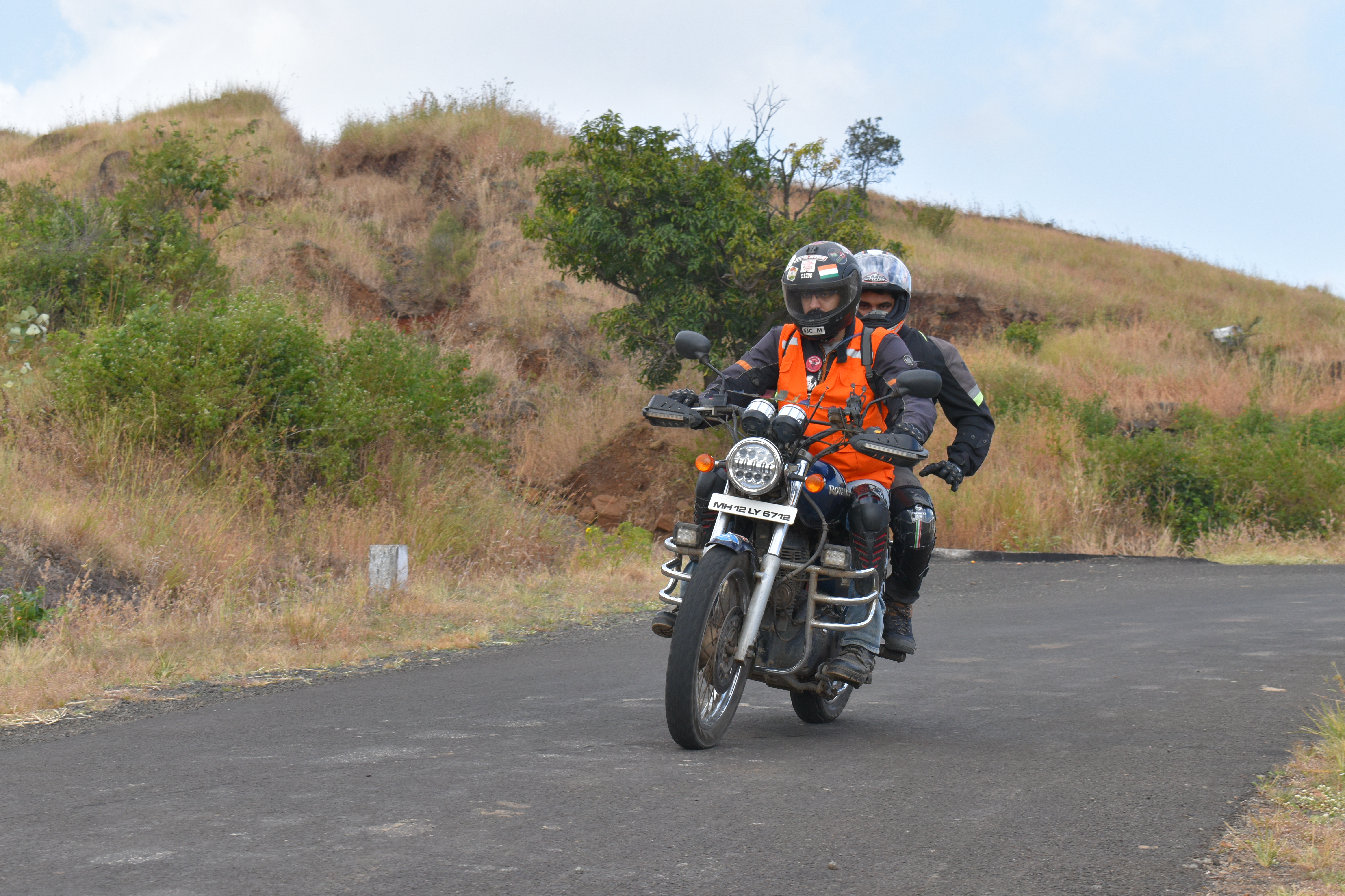 A quick snack break later, everyone geared up, waiting to put all the theory into practice. What followed was an intensive ride session. Each ride leader took each member on a ride on their own bike through a selected ghat section with some crazy twisties and mad angles so the rider could understand the gear shifts, breaking, and acceleration techniques. Immediately after, the rider took over with the leader sitting behind.