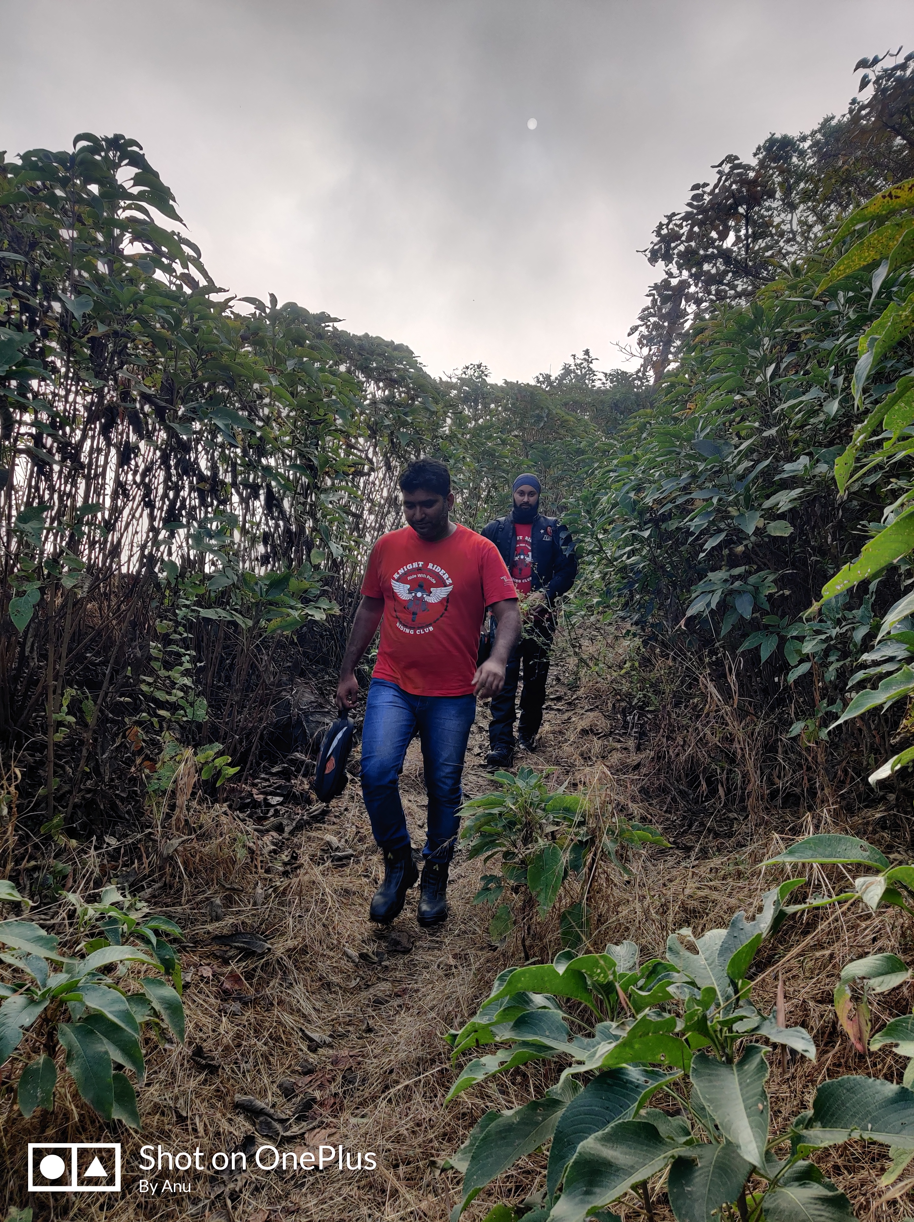 As there is very less space up top to congregate, the leaders took a call to have the rest of the gathering back at the base. (also chai ki latt kagi thi!). We set off on the way back, and this was a bit more challenging with Mother Gravity playing a role in taking the difficulty up a notch. A couple of bikes had a tough time controlling the speed and did take a couple of minor falls due to emergency breaking, but nothing serious.
